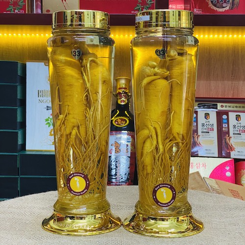 Hình ảnh thực tế Bình ngâm Sâm Hàn quốc 2 lít bình số 33 với 2 củ sâm cực to