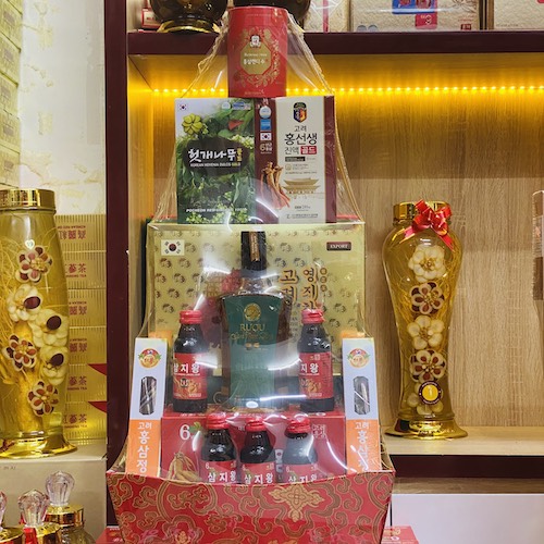 Hình ảnh thực tế Giỏ Quà Tết Cao Cấp Sâm Ngọc Linh kết hợp Hồng Sâm Hàn Quốc - GQT250