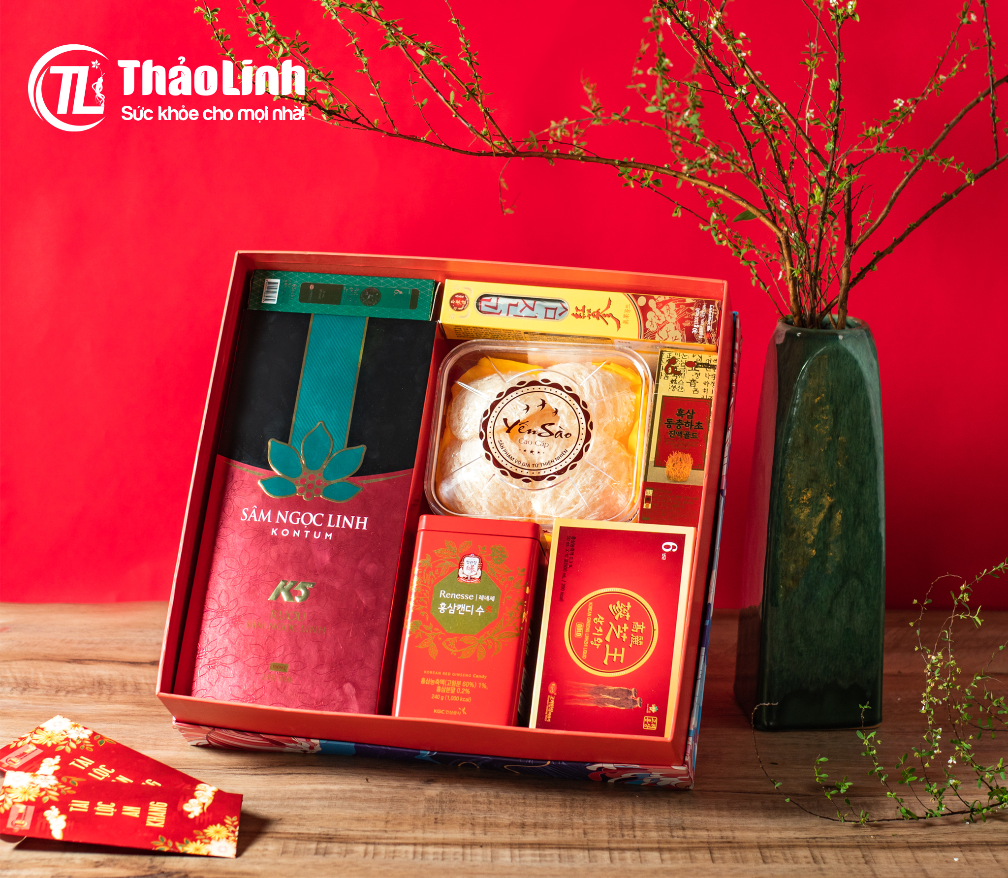 Hình ảnh thực tế Hộp Quà Tết nhân nâm, sâm ngọc linh, yến sào tinh chế nha trang - HQYS4200