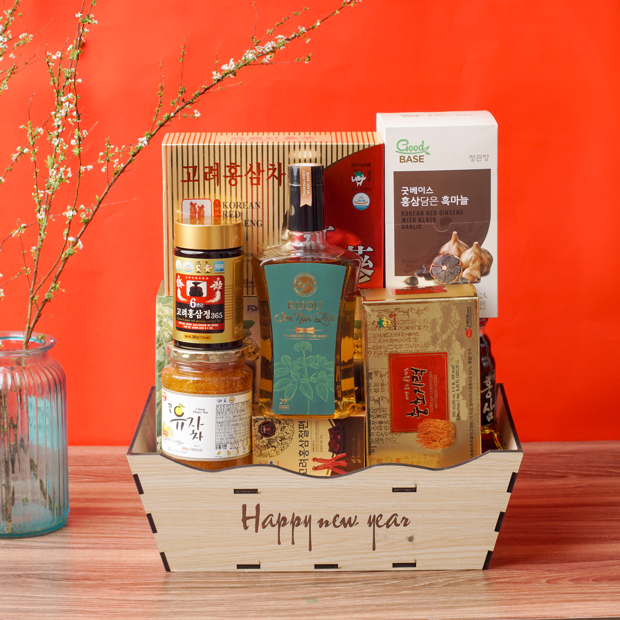 Chi tiết giỏ quà tết sâm ngọc linh kết hợp nhân sâm Hàn Quốc GQT-TL03: