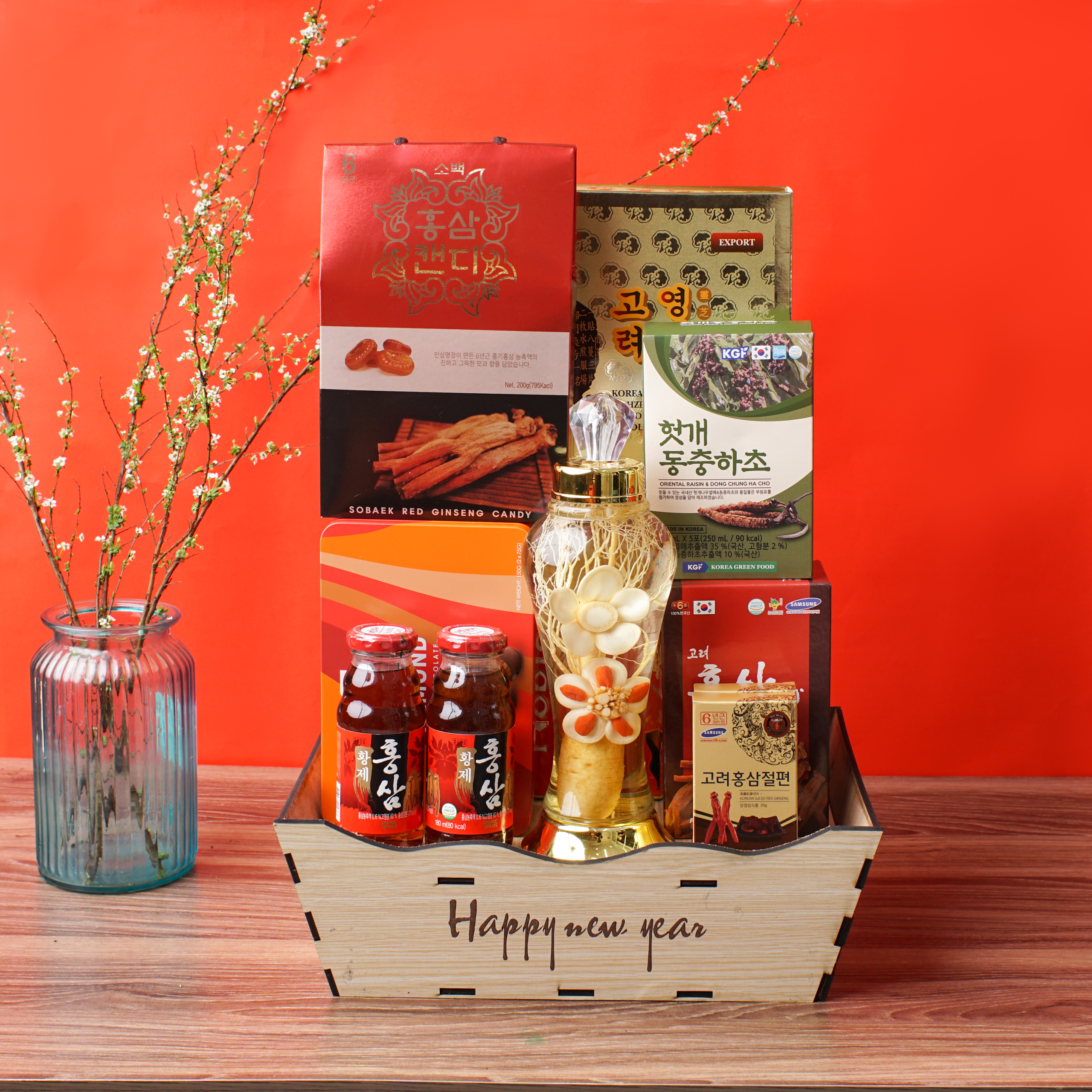 Chi tiết giỏ quà tết sức khoẻ hồng sâm GQT-TL07: