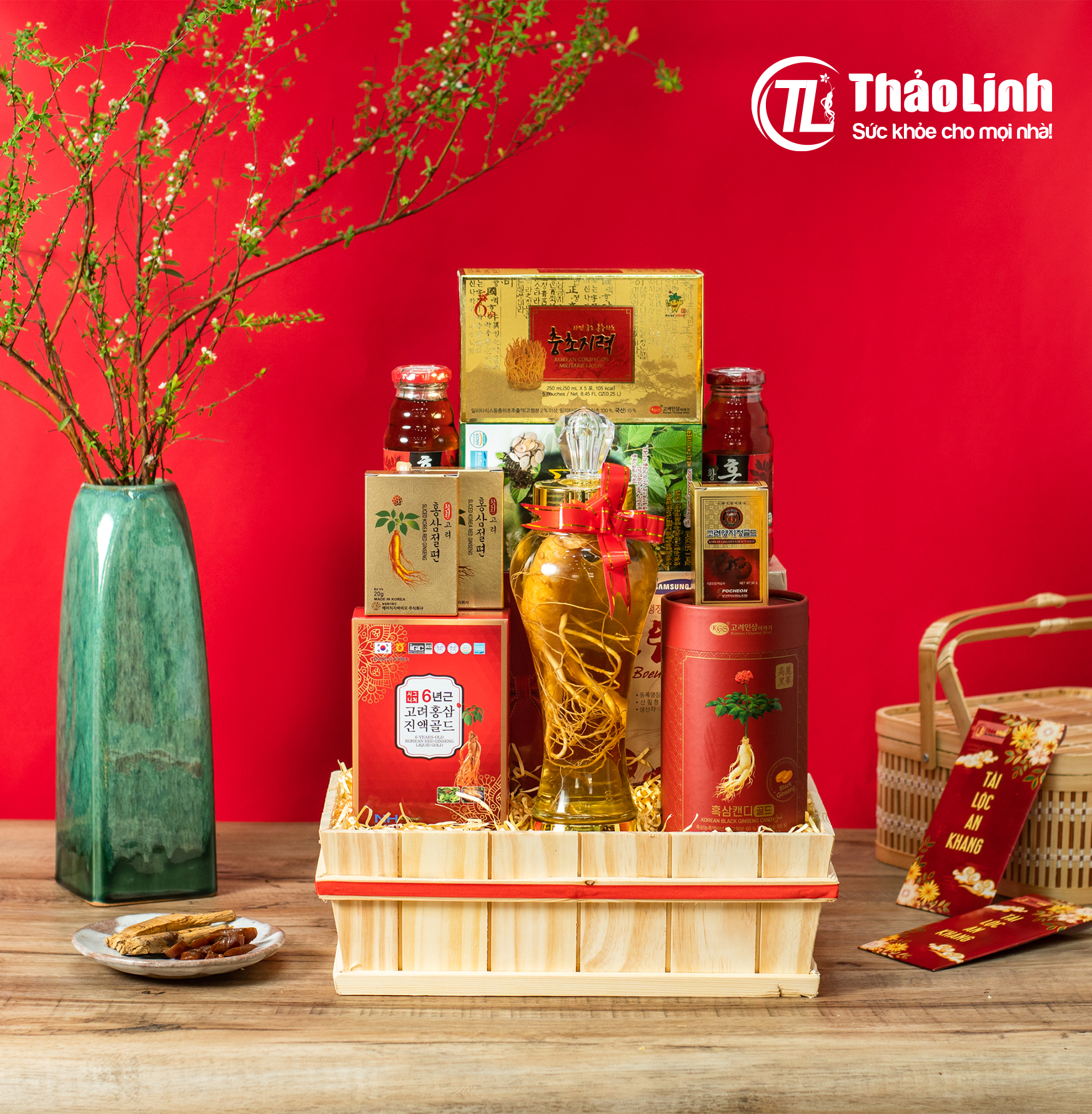 Giỏ quà tết hồng sâm Xuân Vạn Phúc - GQT2200 bao gồm: