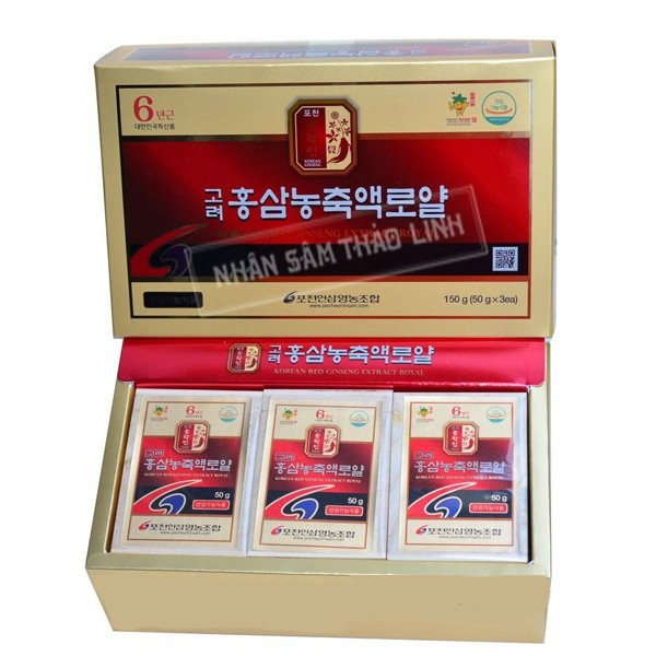 Cao hồng sâm Pocheon 100% nguyên chất hộp 3 lọ x 50gr là dòng sản phẩm cao sâm đặc biệt đến từ thương hiệu Pocheon, có màu vàng cánh gián, thơm nồng đặc trưng của hồng sâm. Sản phẩm nổi bật ở hàm lượng Saponin cao (đạt trên 8%), do đó rất thích hợp trong việc giảm thiểu các chứng bệnh của người cao tuổi.