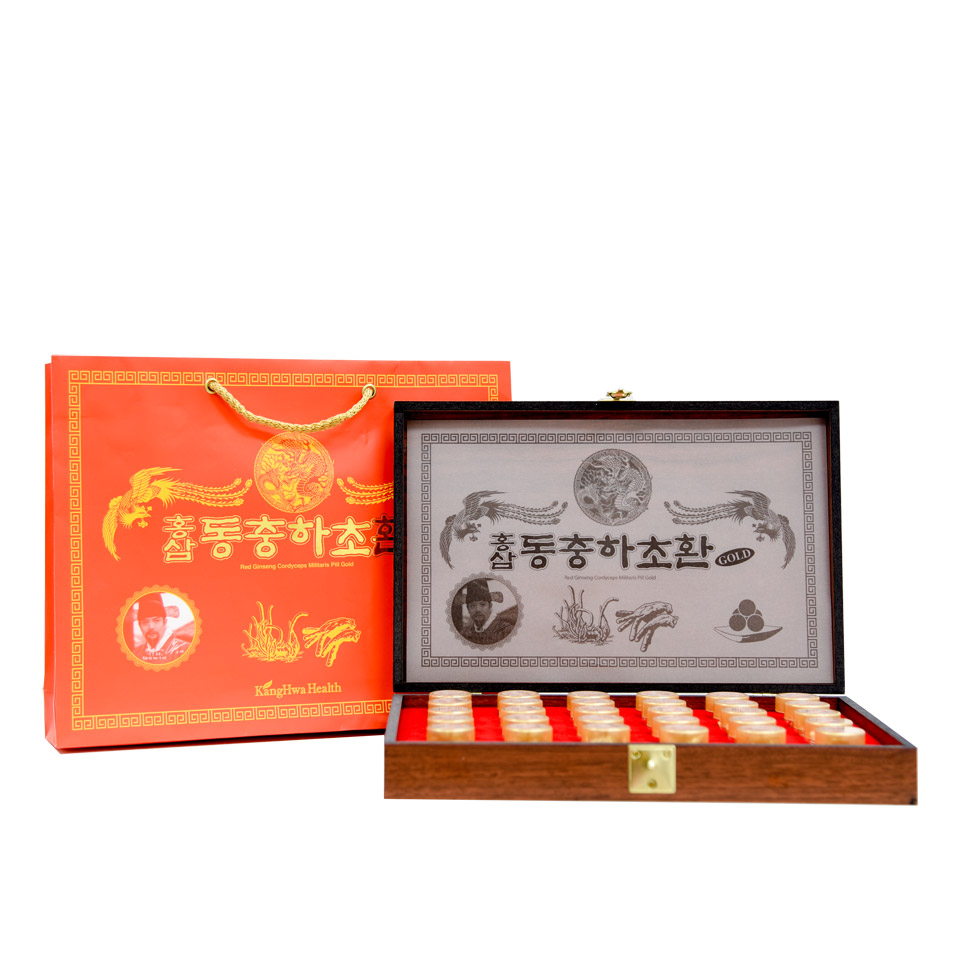 Viên đông trùng hạ thảo hồng sâm Kang Hwa hộp gỗ 30 viên là sản phẩm cao cấp đến từ nhà sản xuất Hồng sâm Hàn Quốc Kang Hwa. Ngoài nguyên liệu chính là tinh chất đông trùng hạ thảo quý giá, sản phẩm còn được bổ sung thêm hồng sâm 6 năm tuổi của Hàn Quốc, gia tăng những ích lợi to lớn về mặt sức khoẻ trong sản phẩm.